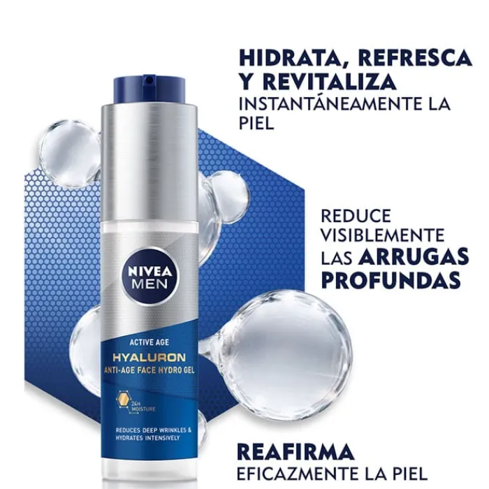 Hyaluron Contorno de Ojos Antiedad de Nivea Men es un tratamiento reafirmante que minimiza las arrugas del contorno.