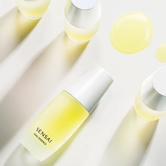 Con la esencia en sérum Dual Essence de Sensai la piel luce más hidratada, luminosa, redensificada, lisa, nutrida, más joven, revitalizada y de aspecto radiante.