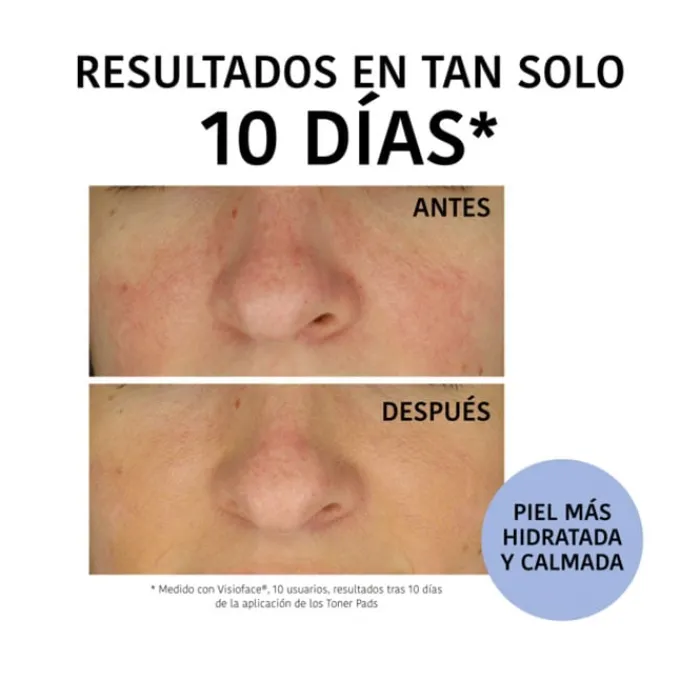 Estos discos impregnados en tónico hidratante y calmante favorece el equilibrio del PH, evita la irritación y rojeces favoreciendo la cicatrización. Su formulación con un 97% de activos de origen natural repara la piel para optimizar los beneficios del posterior tratamiento. Contiene centella asiática que calma y suaviza la piel, pantenol que hidrata y regenera la piel proporcionando confort. Incluye arándanos cuyo poder antioxidante aporta elasticidad y confort a la piel.