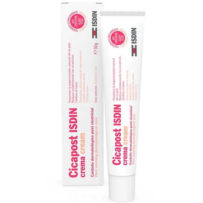 Cicapost Crema de Isdin es una crema para que reparadora que reduce la pigmentación y picor de las cicatrices.