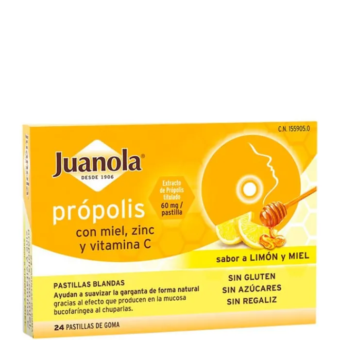 Estas pastillas blandas han sido formuladas libres de gluten, azucares y regaliz. Contienen própolis combinado con miel, vitamina C y zinc que producen en la mucosa bucofaríngea efecto sedoso al chuparlas que ayuda a hidratar y suavizar la garganta de modo natural. Poseen un delicioso sabor a limón y miel que proporciona bienestar.