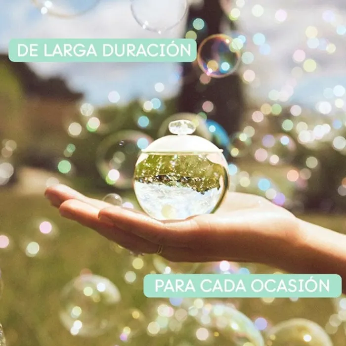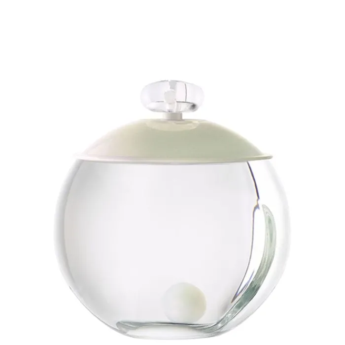 El frasco de este perfume es de vidrio y tiene una forma esférica que en su interior esconde una perla, símbolo de feminidad, delicadeza y pureza. Sus líneas depuradas, su transparencia y el blanco lacado, nos transmite una sensación de paz y perfección.