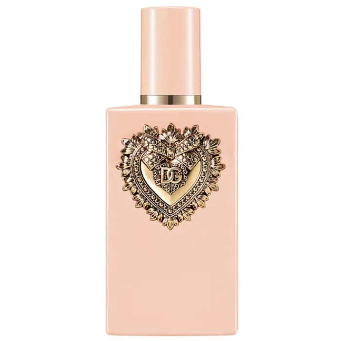 El frasco My Devotion Eau de Parfum Intense de Dolce & Gabbana se presenta en color rosa brillante adornado con el Sacro Cuore dorado. Un diseño precioso, elegante y atemporal, que encarna la artesanía refinada de Dolce & Gabbana.