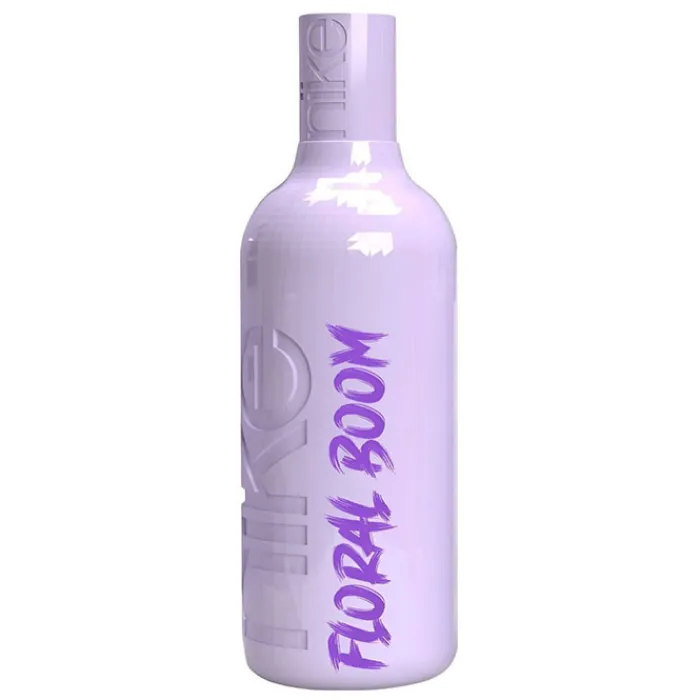 El frasco icónico de Nike Floral Boom Eau de Toilette se viste de gala para descubrirnos un diseño esférico y envolvente de líneas curvas que se tiñe de un color lila pálido que armoniza con el tapón que lo corona y contrasta con las letras de su nombre en un morado luminoso el a lo largo de él.