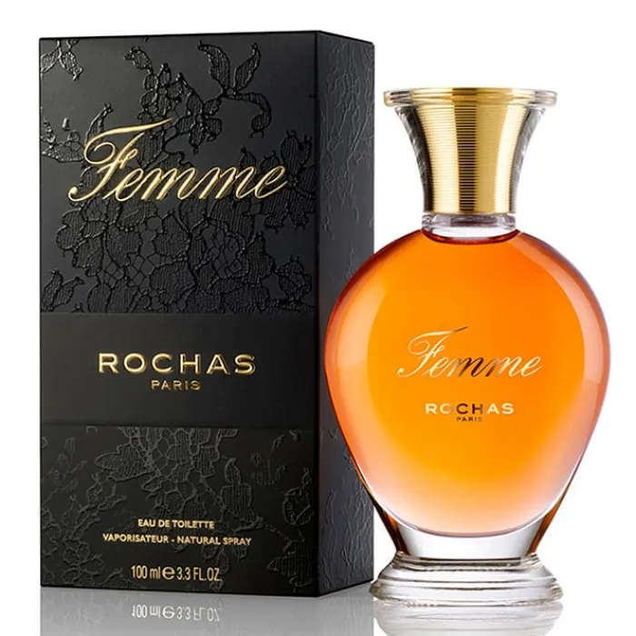Esta fragancia pertenece a la familia olfativa Chipre Frutal para mujeres y fue creada en el año 1944 por el maestro perfumista Edmond Roundnitska. La supremacía del perfume Femme de Rochas gira entorno al contraste de aromas proporcionados por la bergamota, que tiene un carácter fresco. El musgo de roble que otorga la nota amaderada llena de fuerza. El Ylang, yasmín y rosas que crean una fragancia suave y delicada como las flores. Femme de Rochas, es un perfume con un aroma Chypre-afrutado. Además de ser el primer perfume considerado gourmand gracias a su exquisita composición y mezcla de elementos.