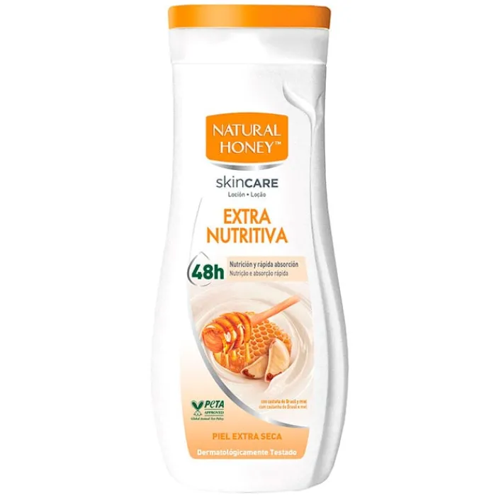 Loción Extra Nutritiva de Natural Honey es una loción corporal que hidrata y nutre la piel seca durante 48 horas.