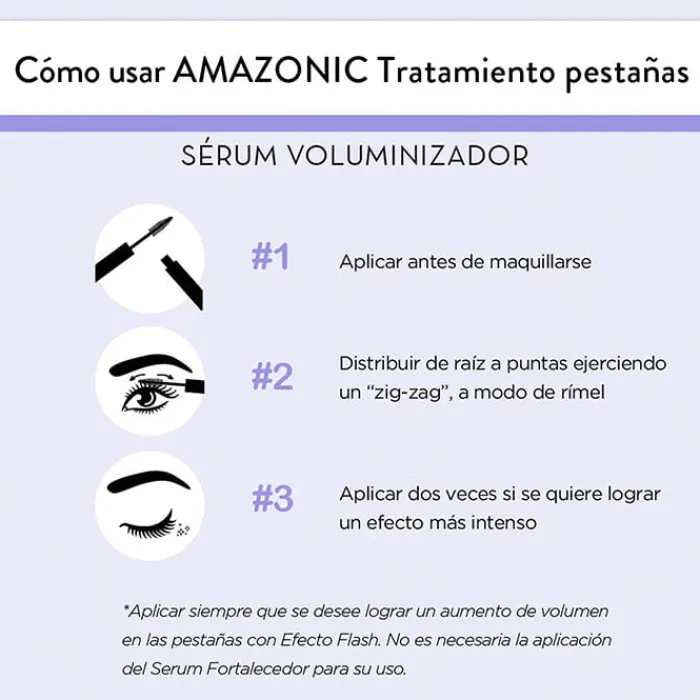 Para comenzar a utilizar Amazonic Pestañas Sérum Fortalecedor + Voluminizador de Nuggela & Sulé, desmaquilla y limpia la zona y aplica el sérum en la raís de las pestañas superiores. Pestañea para que llegue hasta las pestañas inferiores. Dejar actuar hasta 6 horas.