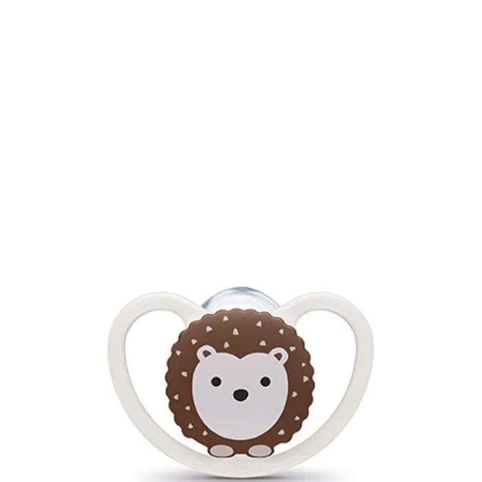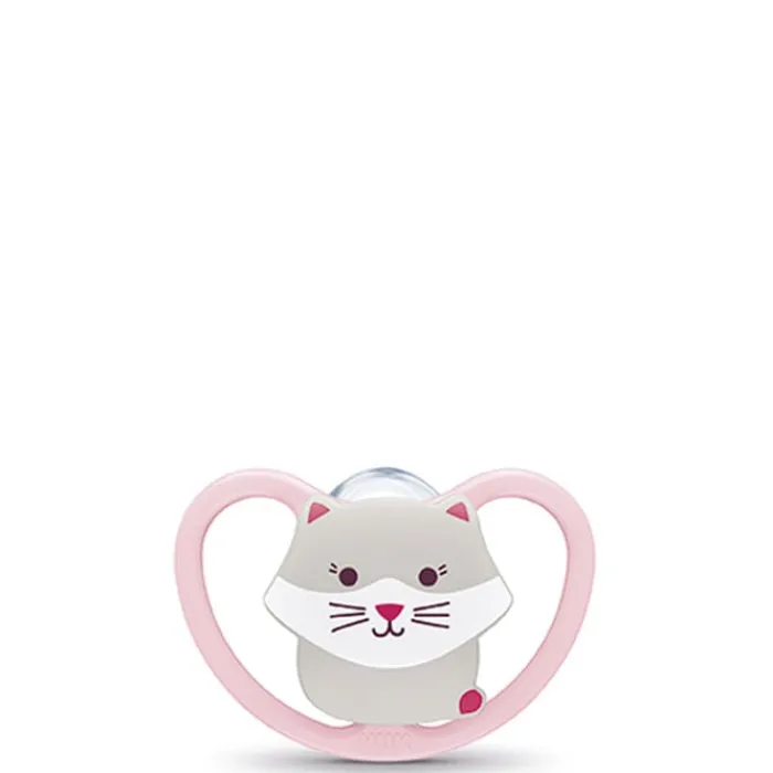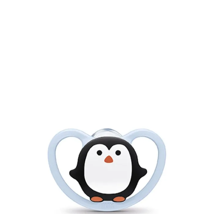 Incluye una plana y suave tetina de cuello más estrecho y delgado. No contiene BPA. Como resultado del uso de Nuk Chupete Space 0-6 Meses Silicona se garantiza el confort de los bebes, incluso los que poseen la piel más sensible.
