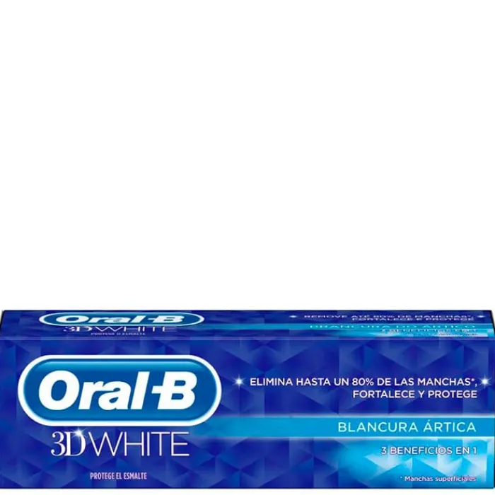 3D White Blancura Ártica de Oral-B es una pasta de dientes blanqueadora que protege, fortalece y elimina el 80% de las manchas.
