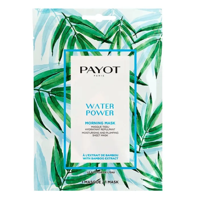 Payot Water Power Morning Mask es de tejido de fibra ecológica Lyocell y tiene un aroma floral y delicado de bergamota, té blanco y almizcle.