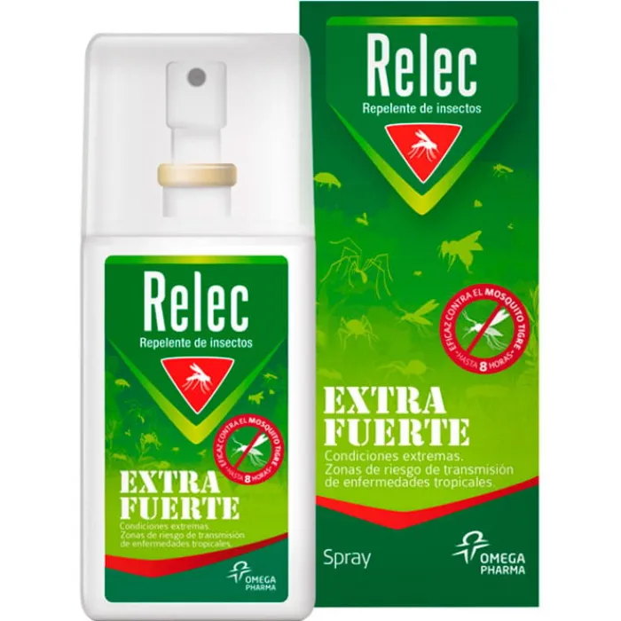 Este spray repelente de insectos ha sido creado para protegerse en viajes tropicales y condiciones extremas. Contiene un 50% de DEET y geraniol para una máxima protección y duradera a lo largo de 9 horas desde la primera aplicación. Relec Extra-Fuerte ofrece una protección de hasta 8 horas contra el Aedes Anopheles y hasta 4 horas contra el Aedes Aegypti.
