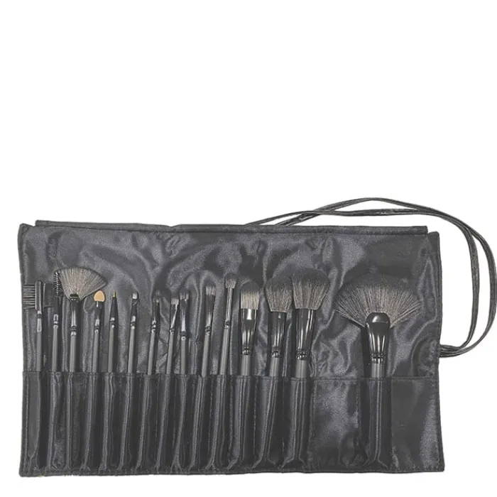 Esta manta de maquillaje de calidad superior está compuesta por 15 pinceles y brochas de mango negro ubicados específicamente en su interior con un departamento propio para evitar desplazamientos y el correcto mantenimiento de su calidad. Están protegidos por una manta enrollable que permite recogerlos ordenadamente y facilitar su aplicación.