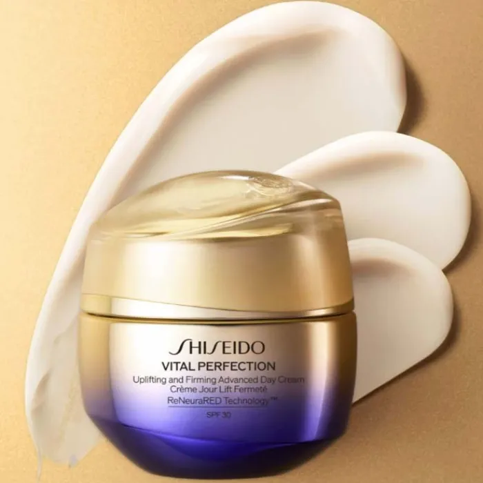 Shiseido Vital Perfection Uplifting and Firming Day Cream SPF30 protege frente a los efectos nocivos de las radiaciones solares UV así como de la sequedad en la piel, revelando la firmeza, tersura y uniformidad en tan sólo 1 semana. Su textura sedosa proporciona elasticidad, combate la falta de elasticidad, arrugas profundas y manchas de la piel, luce sedosa, flexible y radiante.