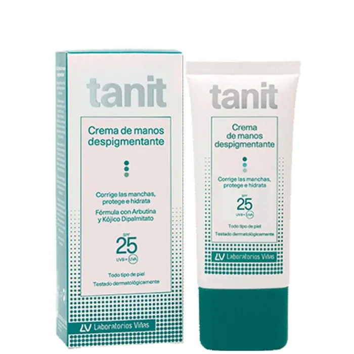 Crema de Manos Despigmentante SPF25 de Tanit es una crema de manos hidratantes que corrige las manchas y protege la piel.