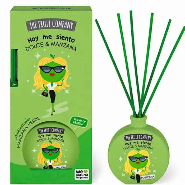 Este ambientador de mikado con varillas de formulación libre en alcohol contiene aroma de manzana y extractos naturales que prolongan la duración de su perfume hasta 60 días. Con notas olfativas de manzana inunda de frescura y vitalidad la fragancia. The Fruit Company transmite una agradable sensación de alegría y naturalidad.