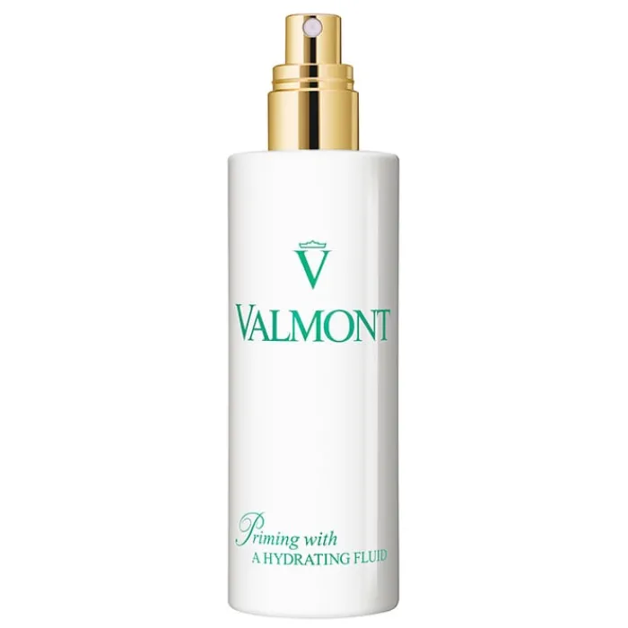 Priming With a Hydrating Fluid de Valmont es una bruma hidratante que refresca la piel y fija el maquillaje.