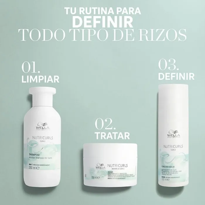 Se recomienda aplicar Nutricurls Mask de Wella Professionals sobre el cabello húmedo de medios a puntas y aclarar con agua. Para completar el cuidado del cabello, es conveniente utilizar el champú y acondicionador capilar Nutricurls de Wella Professionals.